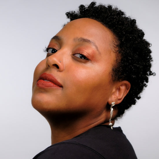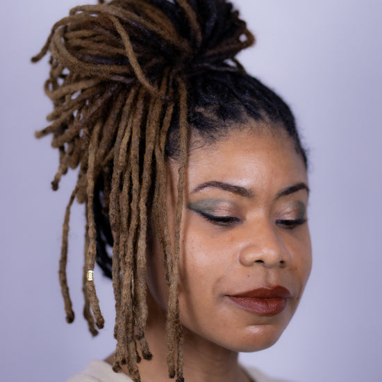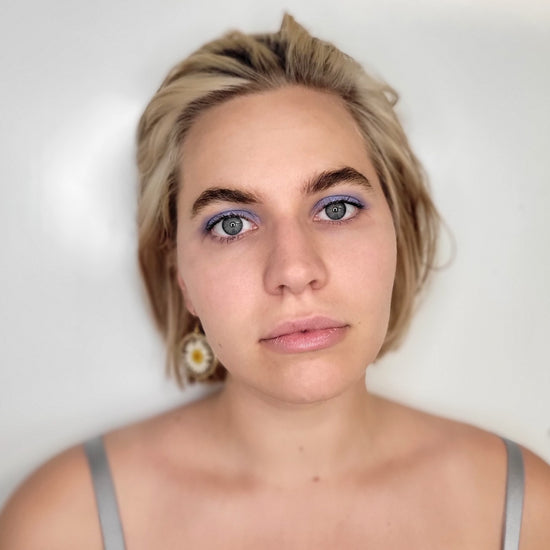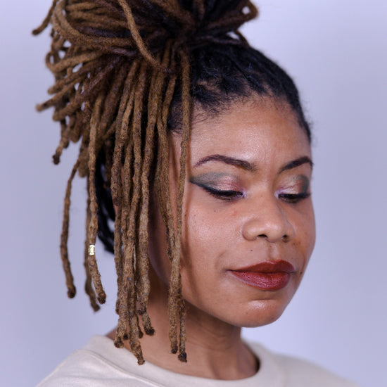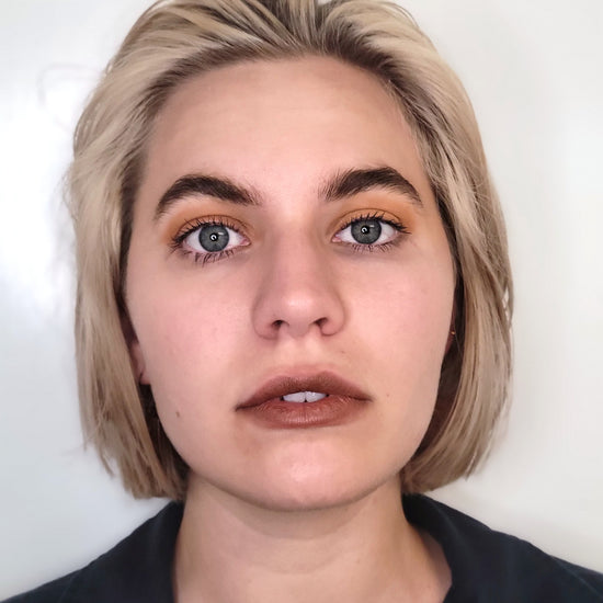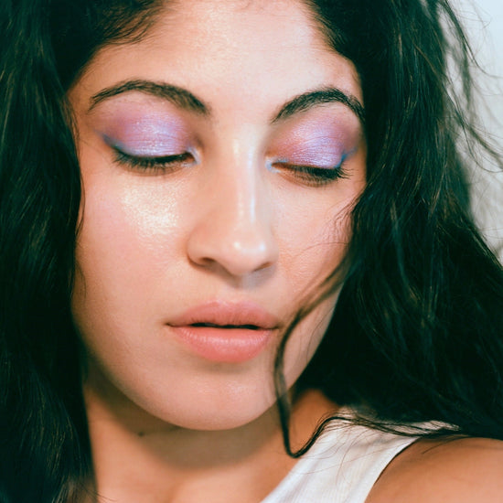 Aloe vera based liquid eyeshadow, made with 8 ingredients or less, and packaged in a recyclable or refillable glass tube.