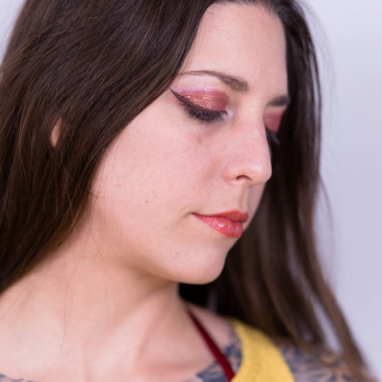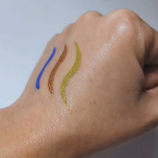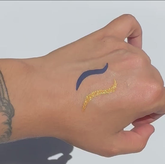 Aloe vera based liquid eyeliner, made with 8 ingredients or less, and packaged in a recyclable or refillable glass tube.