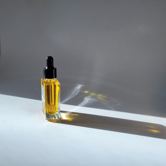 All of the oils in this elixir were chosen for their ability to deeply penetrate the skin, carrying with them beneficial fatty acids, vitamins, & antioxidants. Enhanced with essential oils of Rose Geranium, Vetiver, & Wild Orange that assist with keeping the skin bright, soothed, toned, and able to hold moisture.