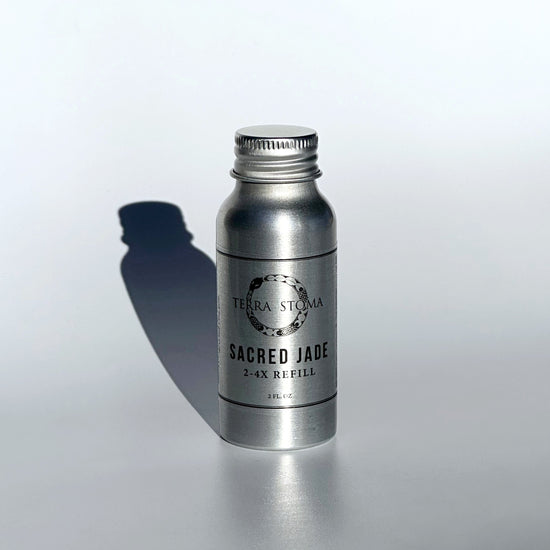 With this recyclable aluminum bottle, your glass Sacred Jade bottle can be filled another 2-4 times, depending on the original size of glass bottle you purchased.